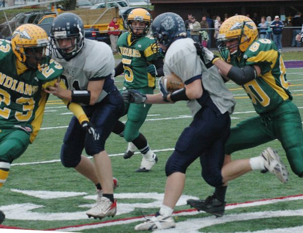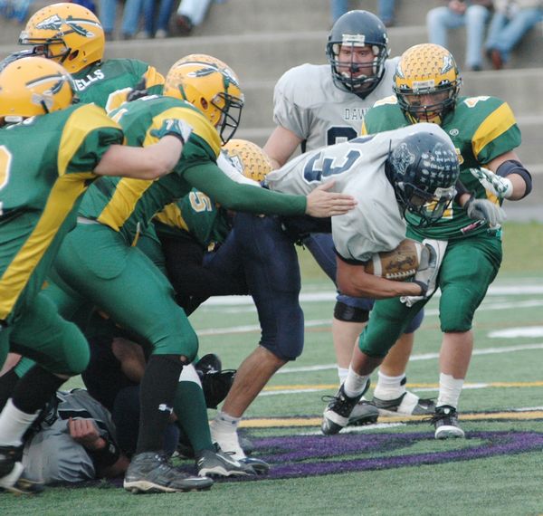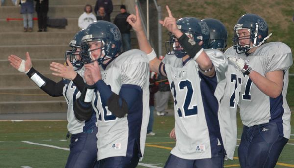 Bulldogs celebrate after beating Ravena, 14-3, in the Class B Super Bowl Saturday.
