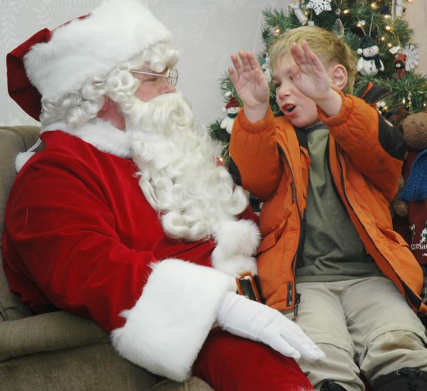 An animated Buddy Labadia shares his wish list with Santa at CREST's holiday bazaar Saturday.