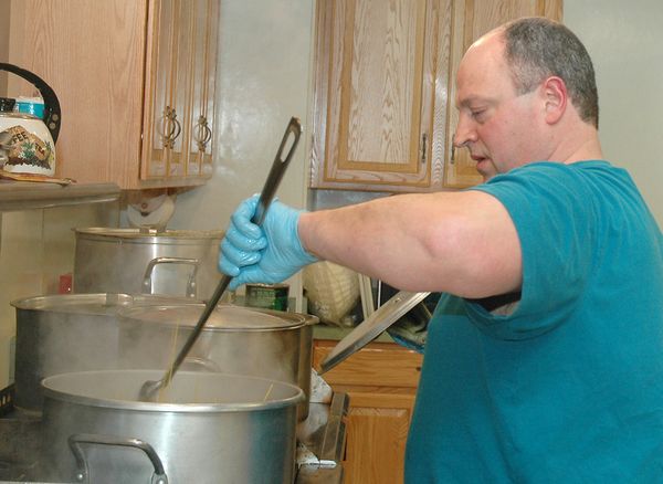 Andy Lawyer mans the spaghetti pot.