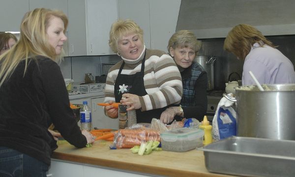 SSCS volunteers handle kitchen chores.