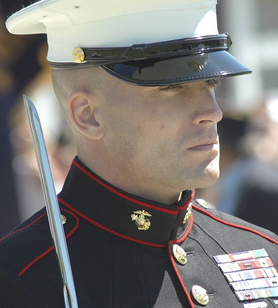 Marines added spit and polish to Monday's ceremony.