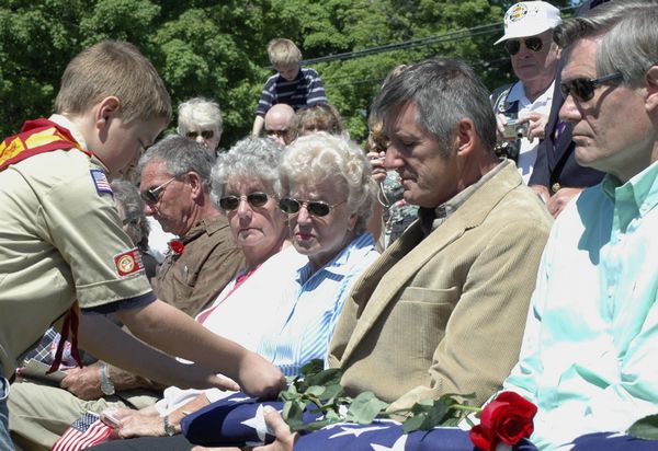 Scouts presented family members with roses.