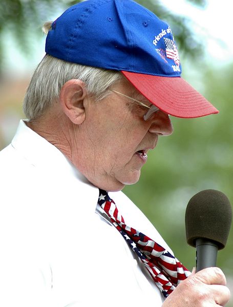 John Sagendorf reads off the next parade entry.