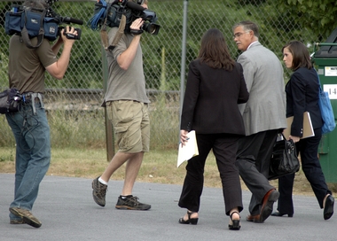 TV crews grab Supervisor Tom Murray on his way inside.