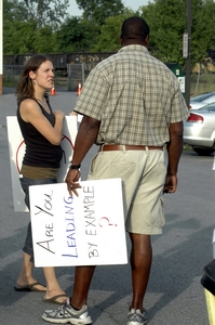 Alicia Keenan and Jeff Lucier wait for other protestors.