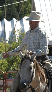 Art Snow prepares to rope a sawhorse cow.