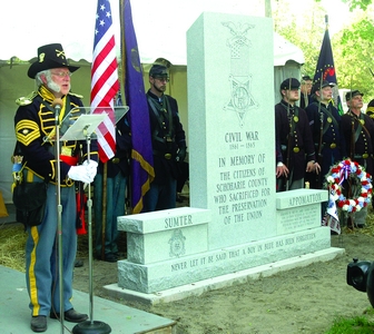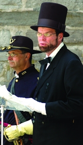 Pete Lindemann as Lincoln delivers his message; left is Captain Richard Christman.