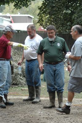Friends clean up at the Caza home in Schoharie.