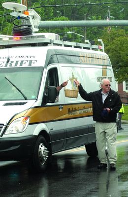 Sheriff Tony Desmond gets ready with a basket of treats.
