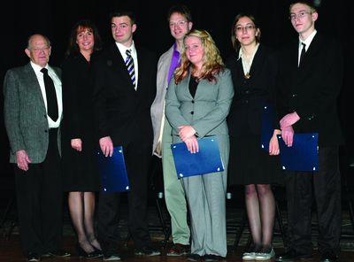 Judges Donald Klob and Donna Pesta, Madison Wellman, Judge Stephen Stasser, Renee Handy, Holly Spiess, Aaron McDonald.