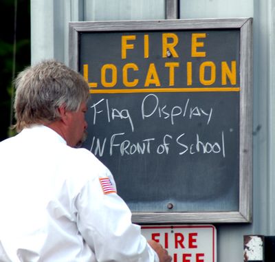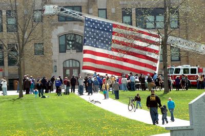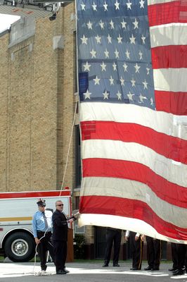Title:  Nat'l 9/11 flag hangs proudly in Sharon
